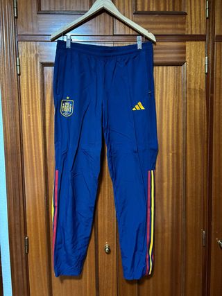 Pantalón deportivo de la Selección Española. - Talla M. - Detalles de rayas rojas y amarillas en los laterales.