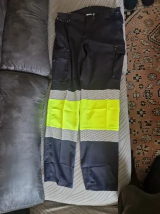 Pantalón de trabajo con detalles de alta visibilidad. - Diseño moderno y funcional. - Combinación de colores negro y amarillo. - Tejido resistente para uso diario.