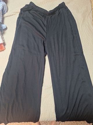 Pantalón negro de tela fina y caída suelta. Ideal para un look cómodo y elegante. - Cintura elástica. - Diseño amplio y fluido. - Perfecto para el día a día.
