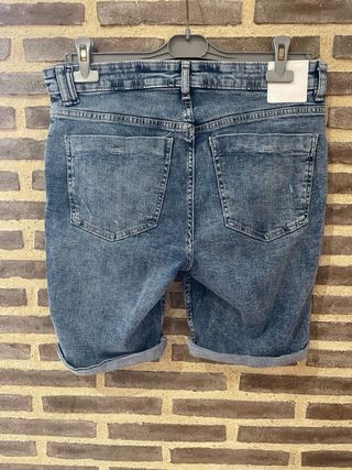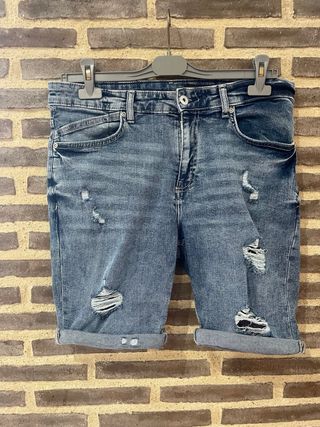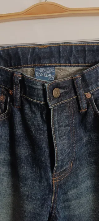 Pantalón vaquero de corte moderno en muy buen estado. - Diseño desgastado. - Cintura con trabillas. - Cierre de botón y cremallera.