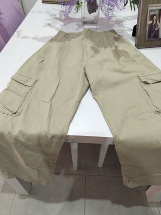 Pantalones de estilo cargo en color beige. Son cómodos y prácticos. - Dos bolsillos laterales con solapa. - Cierre de cremallera y botón.