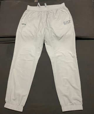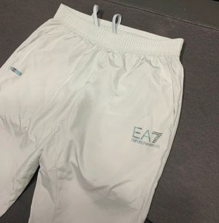 Pantalón deportivo EA7, completamente nuevo a estrenar. -Color blanco con reflejos verdosos.. Diseño moderno y cómodo. - Cintura con cordón ajustable. - Puños elásticos en los tobillos. - Logo EA7 en la pierna.