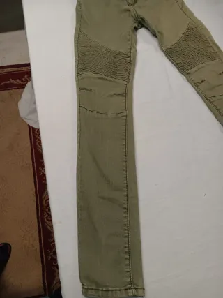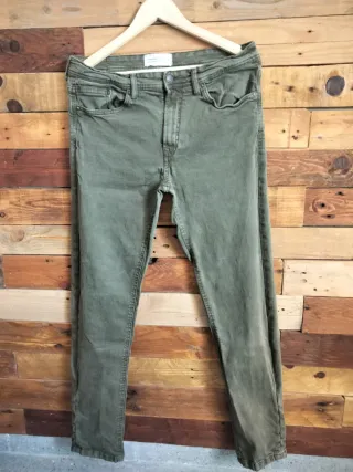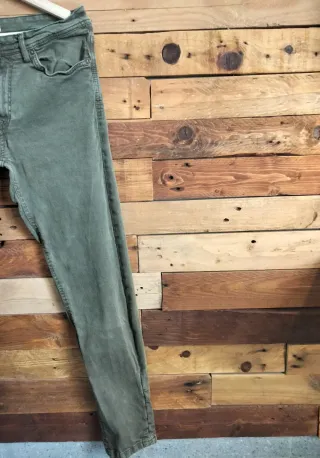 Pantalón vaquero de color verde oliva. Está algo usado pero no tiene ningún desperfecto, la cremallera funciona perfectamente. Un básico para cualquier armario. - Corte moderno. - Tejido resistente.