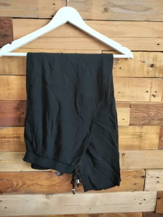 Pantalón largo de color negro. Es nuevo sin etiqueta. Está en perfectas condiciones. Es muy cómodo y ancho pero de tobillo pitillo. - Cintura elástica con cordón ajustable. - Bolsillos laterales.