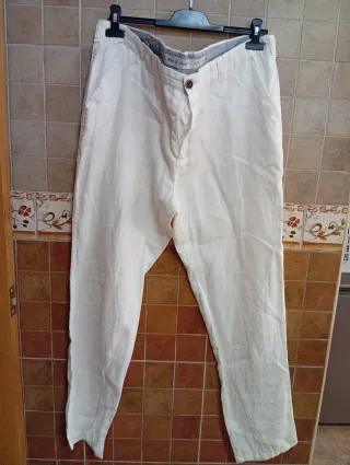 Pantalón de lino de corte recto y cintura elástica. Nuevo sin etiqueta. - Tejido ligero y transpirable. - Cintura con cordón ajustable. - Bolsillos laterales.