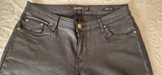 Pantalón de corte recto con acabado encerado que le da un toque muy chic. - Diseño de cinco bolsillos. - Cierre de cremallera y botón. - Costuras a tono.