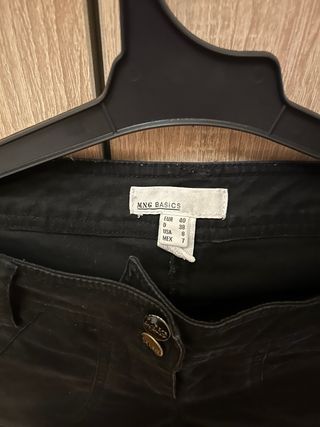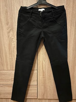 Pantalón Mango en color negro talla L. Diseño moderno y versátil. - Cintura con trabillas. - Cierre de cremallera y botón. - Bolsillos delanteros y traseros.