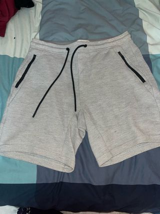 Pantalón corto de chándal muy cómodo. Un solo uso. - Cintura con cordón ajustable. - Bolsillos laterales con cremallera.