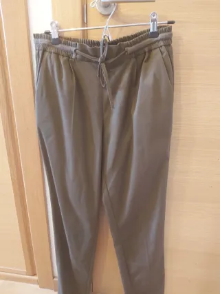 Pantalón de vestir de Zara en color verde oliva. - Cintura elástica con cordón. - Bolsillos laterales.