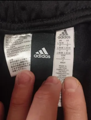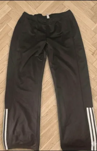 Pantalón deportivo Adidas de color negro. - Diseño clásico con tres rayas blancas en los laterales. - Cintura elástica con cordón para un ajuste personalizado. - Logo de Adidas también en la parte de atrás.
