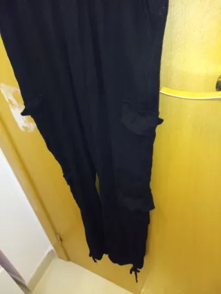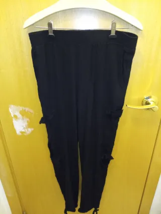 Pantalón ligero y cómodo, ideal para días cálidos. - Diseño con bolsillos cargo. - Detalle de lazos en los bolsillos. - Ajuste en los tobillos con cordones.