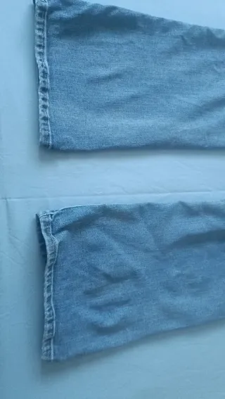Pantalones vaqueros, corte recto, Talla 42 muy cómodos y bonito color + Pantalones negros pierna ancha, Talla 44, tejido muy agradable y suave, comodísimos y con bonita caída Los dos en perfecto estado, casi sin uso