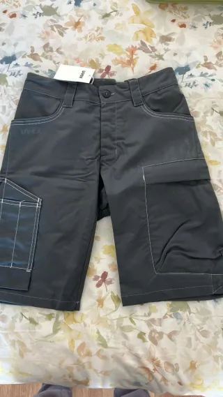 Pantalón corto de trabajo de la marca Uvex. Diseño moderno y funcional. - Bolsillos cargo laterales. - Costuras reforzadas en contraste. - Cierre de botón y cremallera.
