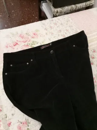 Pantalóntipo tejano para mujer. Es de talla 46 muy poco usado en muy buen estado - Corte recto. - Cintura alta. - Cierre de cremallera y botón.