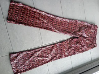Pantalón de fiesta de Zara, sin estrenar. - Diseño con estampado geométrico en tonos rojos y negros. - Corte ancho y fluido. - Cierre con botones y cremallera. - Es XS pero tb sirve como una S.