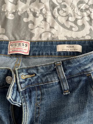 Pantalón vaquero Guess modelo Adam Super Skinny para hombre. - Corte super skinny. - Color azul. - Estilo clásico. - Diseñados en California.