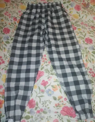 Pantalones con patrones "Príncipe de Gales". Son muy bonitos y elegantes. Además son muy cómodos y finitos. Los tengo en talla M y XXL: cada uno por 15€.