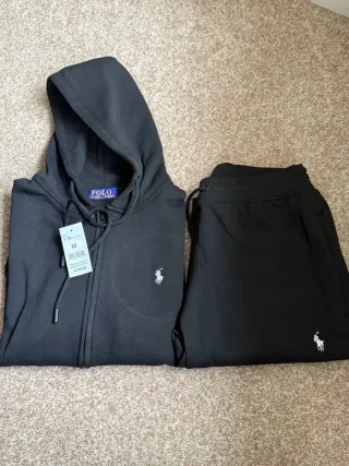 Conjunto de chándal de Polo Ralph Lauren. Toda las tallas disponible - Sudadera con capucha y cremallera completa. - Pantalón de chándal con cordón en la cintura. - Logo bordado en ambas prendas.