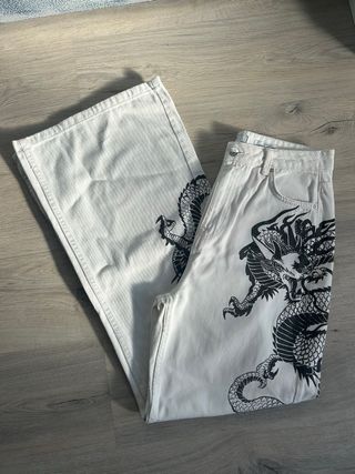 Pantalones blancos con dragón