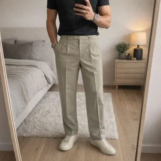 📏 Talla: M (MIRAR MEDIDAS) 📐 Medidas: • 38 cm de ancho de cintura • 99 cm de largo total • 72 cm de largo desde la entrepierna hasta el bajo • 26 cm de tiro 👀 CARACTERÍSTICAS: • Estilo recto, elegante y versátil, ideal para oficina o eventos formales. • Tiro medio, cómodo y favorecedor. • Cierre de cremallera, botón y broche para un ajuste seguro. • Bolsillos funcionales en laterales y decorativos en la parte trasera. • Detalle de raya negra en los laterales, añade un toque distintivo y moderno. • Tejido de 77% modal, 21% algodón y 2% elastano, suave, ligeramente elástico y cómodo para todo el día. ☑️ Estado: Muy buen estado