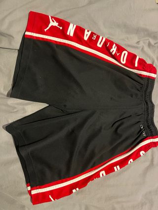 Pantalones cortos deportivos Jordan. - Diseño con banda lateral roja y blanca. - Logo de Jordan en la banda. - Talla L para niño - Tiene una leve rajadura en la parte de alante