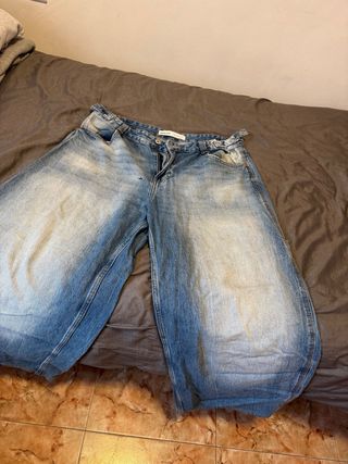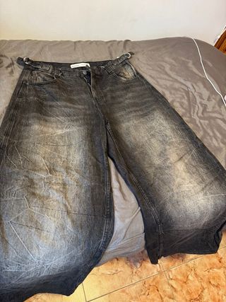 Pantalones de corte ancho con un lavado desgastado. - Cintura alta. - Cierre de cremallera y botón. - Trabillas para cinturón. - Bolsillos delanteros y traseros. (los tengo en azul tambien)