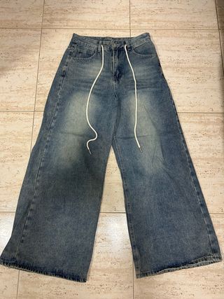 Pantalones vaqueros de corte ancho con un diseño moderno y cómodo. Perfectos para un estilo casual. - Cintura con cordón ajustable. - Lavado desgastado para un look auténtico. - Piernas amplias y fluidas.