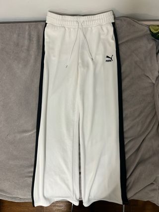 Color: Blanco Talla: M Estilo: Wide leg / corte ancho, cómodo y favorecedor Estado: Muy buen estado. Presenta una pequeña costura interior reforzada (apenas visible, no afecta ni al uso ni a la estética). Detalles: • Cintura elástica con cordón ajustable • Tejido suave y agradable al tacto • Prenda original Puma Si quieres más fotos o tienes cualquier duda escríbeme