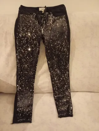 Pantalones Mango Mujer Lentejuelas Negro/Plata