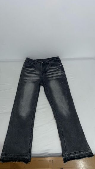 Pantalón vaquero de corte flare con un moderno acabado deshilachado en el bajo. Es XS de hombre, si mides 160-170cm te quedara bien - Diseño de cinco bolsillos. - Cierre de cremallera y botón. - Efecto desgastado en la zona de los muslos y rodillas.