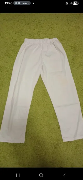Pantalón de trabajo en color blanco, talla M. Ideal para entornos clínicos o de fisioterapia. - Cintura elástica para mayor comodidad. - Corte recto y funcional.