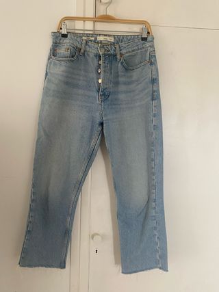 Pantalón vaquero de corte ancho de Zara. - Tiro alto. - Pierna ancha. - Cierre de cremallera y botón.