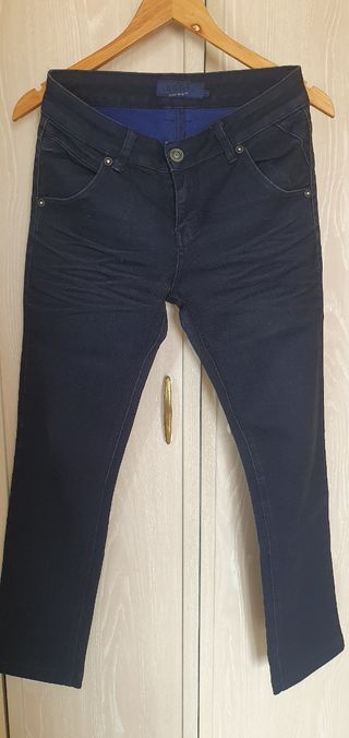 Pantalón de tela vaquera en tono azul oscuro. - Diseño de cinco bolsillos. - Cierre de cremallera y botón. - Costuras reforzadas.
