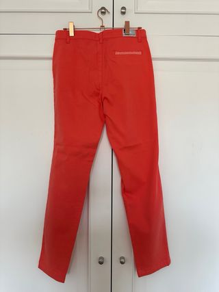 Pantalones de pinzas con un vibrante color coral. - Diseño de pinzas. - Detalle de costura decorativa en los bolsillos. Pantalones de pinzas color coral de Waltron talla 40, adjunto medidas están como nuevos