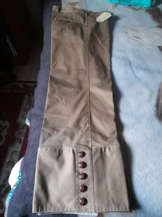 Pantalón de estilo montero en color beige. Presenta un diseño clásico con detalles cuidados.talla 50 son de jimenez - Cierre de botones en la parte inferior de la pernera. - Tejido resistente y duradero. - Bolsillo trasero. - Etiqueta de marca visible.