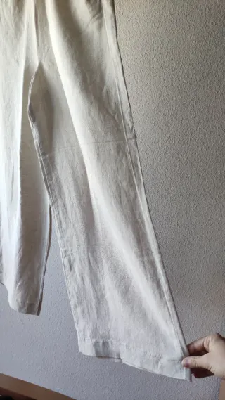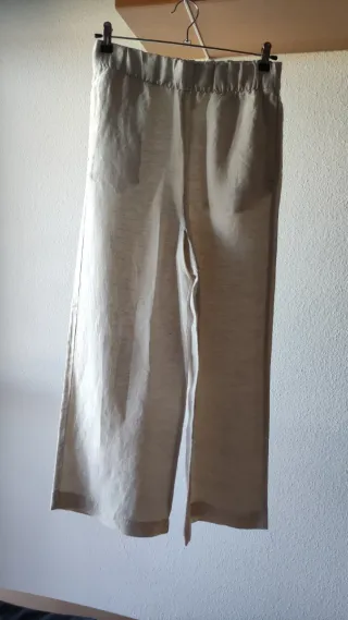 Pantalones beige de lino y viscosa, nuevo sin usar. Es de tiro largo, por lo que es para personas más altas que yo (mido 1'60). Con bolsillos y cintura elástica