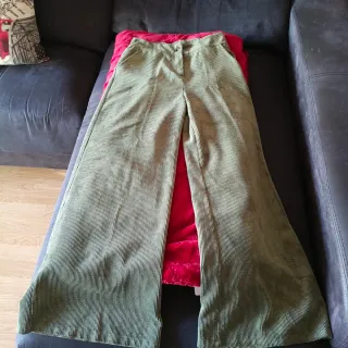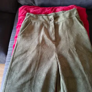 Pantalón de pana para mujer en color rojo coral. talla 46. Son nuevos. - Tejido de pana. - Cierre de cremallera y botón. - Bolsillos delanteros.