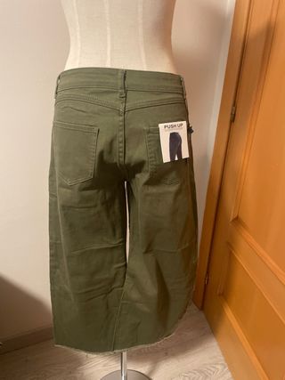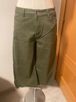 Pantalón de corte culotte en color verde. Diseño moderno y cómodo. - Cintura con trabillas. - Bolsillos. - Bajo deshilachado.