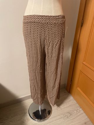 Pantalón con un diseño moderno y llamativo. - Estampado de zigzag en contraste. - Cintura elástica para mayor comodidad. - Corte recto y favorecedor.