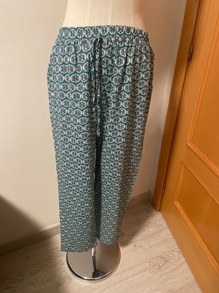 Pantalón con un diseño muy original y llamativo. - Estampado de flores repetidas. - Corte acampanado. - Tejido cómodo.