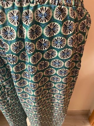 Pantalón con un bonito estampado geométrico. - Cintura elástica. - Cordón ajustable en la cintura. - Diseño de círculos en verde, azul y blanco.