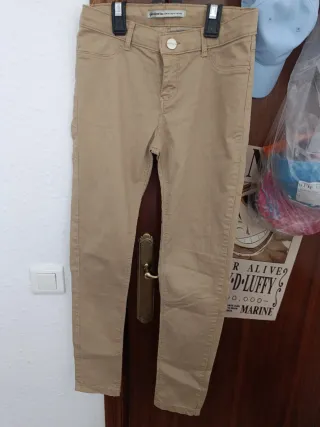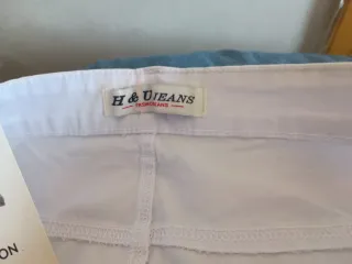 Pantalones vaqueros skinny de tiro súper alto de la marca Pull&Bear. Aún conservan sus etiquetas originales. - Diseño skinny. - Tiro súper alto. - Color blanco roto. - Detrás se pueden observar dos pequeñas manchas de estar guardado, nada que no se pueda lavar
