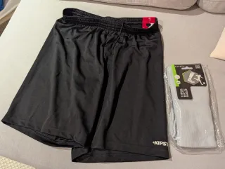 Conjunto de pantalón corto y medias de la marca Kipsta. Sin estrenar - Pantalón corto negro. - Medias grises.