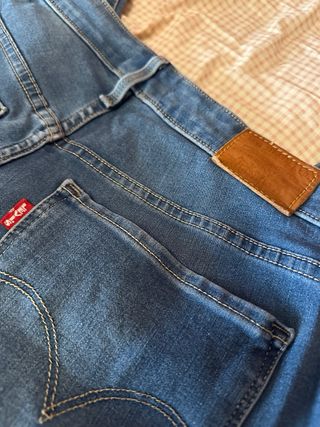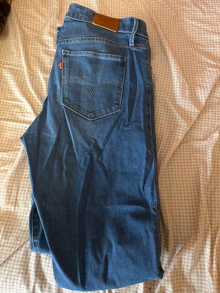 Pantalón vaquero de la marca Levi's. - Talla 14W (equivalente a 44-46 EU). - Diseño clásico de cinco bolsillos. - Parche de cuero en la cintura. - Un solo uso. - Modelo Shaping Skinny 311. - Medidas: 103cm de largo, 40cm de cintura.