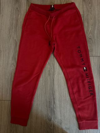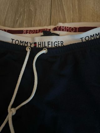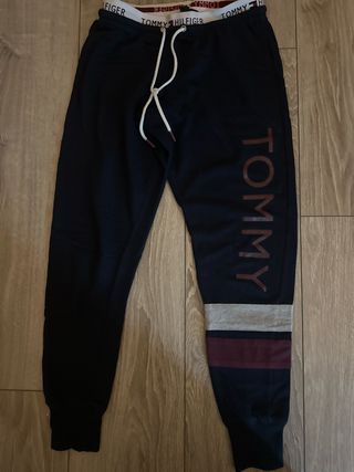 Pantalón de chándal de la marca Tommy Hilfiger. - Diseño en color azul marino. - Cintura con cordón. - Detalle de logo vertical en la pierna. - Banda multicolor en la parte inferior de la pierna.