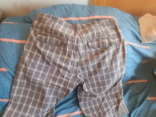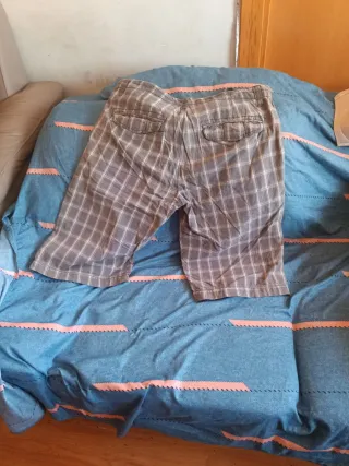 Pantalón corto de hombre con un diseño a cuadros. - Cintura con trabillas para cinturón. - Dos bolsillos traseros. - Cierre de botón y cremallera.