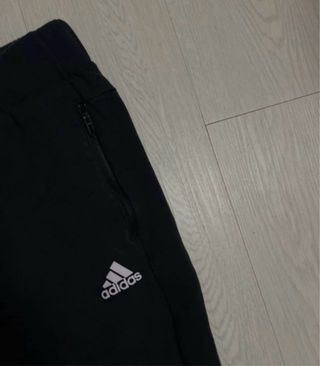 Pantalón deportivo Adidas de color negro. Cuenta con detalles reflectantes en los bajos. - Dos bolsillos laterales con cremallera. - Logo de Adidas bordado en la pierna izquierda. - Cintura elástica con cordón ajustable.