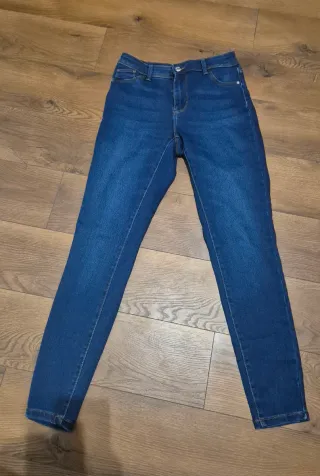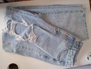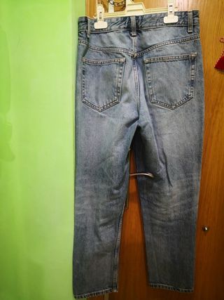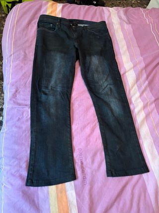 Pantalón vaquero de corte ajustado. Tienen 2 puestas, como se puede ver está prácticamente nuevo. Talla 34, es elástico - Cintura alta. - Cierre de botón y cremallera. - Bolsillos delanteros y traseros.