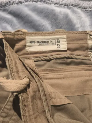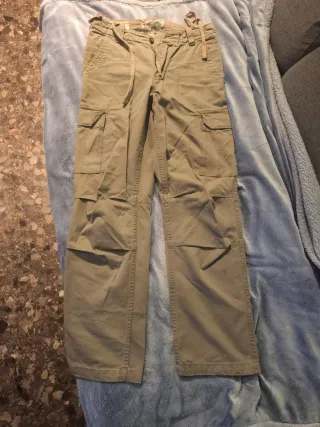 Pantalones cargo de color caqui, ideales para un estilo casual. - Cintura con cordón ajustable. - Múltiples bolsillos. - Diseño de corte recto. - Como nuevo. - Súper estilo con múltiples bolsillos y cordones. - Cómodos. * Sólo envíos y al instante.