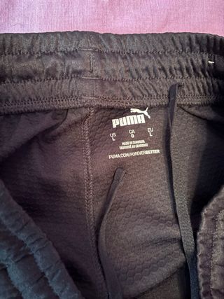 Pantalón deportivo del AC Milán. - Color negro con detalles en rojo. - Logo de Puma en la pierna derecha. - Escudo del AC Milán en la pierna izquierda. - Cintura con cordón ajustable. - Cremalleras en los tobillos.